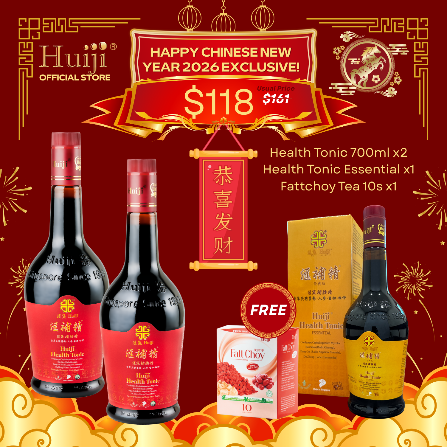 Singapore Award-Winning Health Tonic – Huiji Health Tonic. Trusted, recommended and serving generations since 1988. Made with 100% natural premium herbs such as Cordyceps Sinensis (Fermented), Cordyceps Eucommiae (Du Zhong), Radix Ginseng, Radix Rehmanniae Preparata (Shu Di), Radix Angelicae Sinensis (Dang Gui), Fructus Jujubae (Da Zao). No added sugar and alcohol-free, and also Halal certified. Taste is pleasant and mild in nature, and fragrant in scent. It is made suitable for all to consume daily, including breastfeeding mummies and vegetarians.