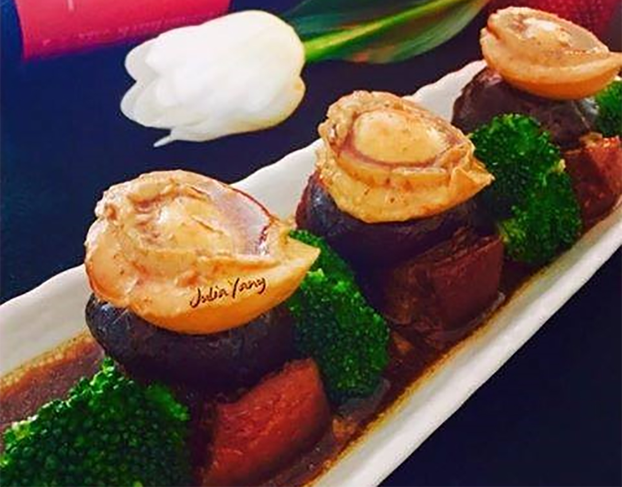 - Lastly, add the abalone to the braised mushrooms and pork. Stir for 1 minute until it is combined.