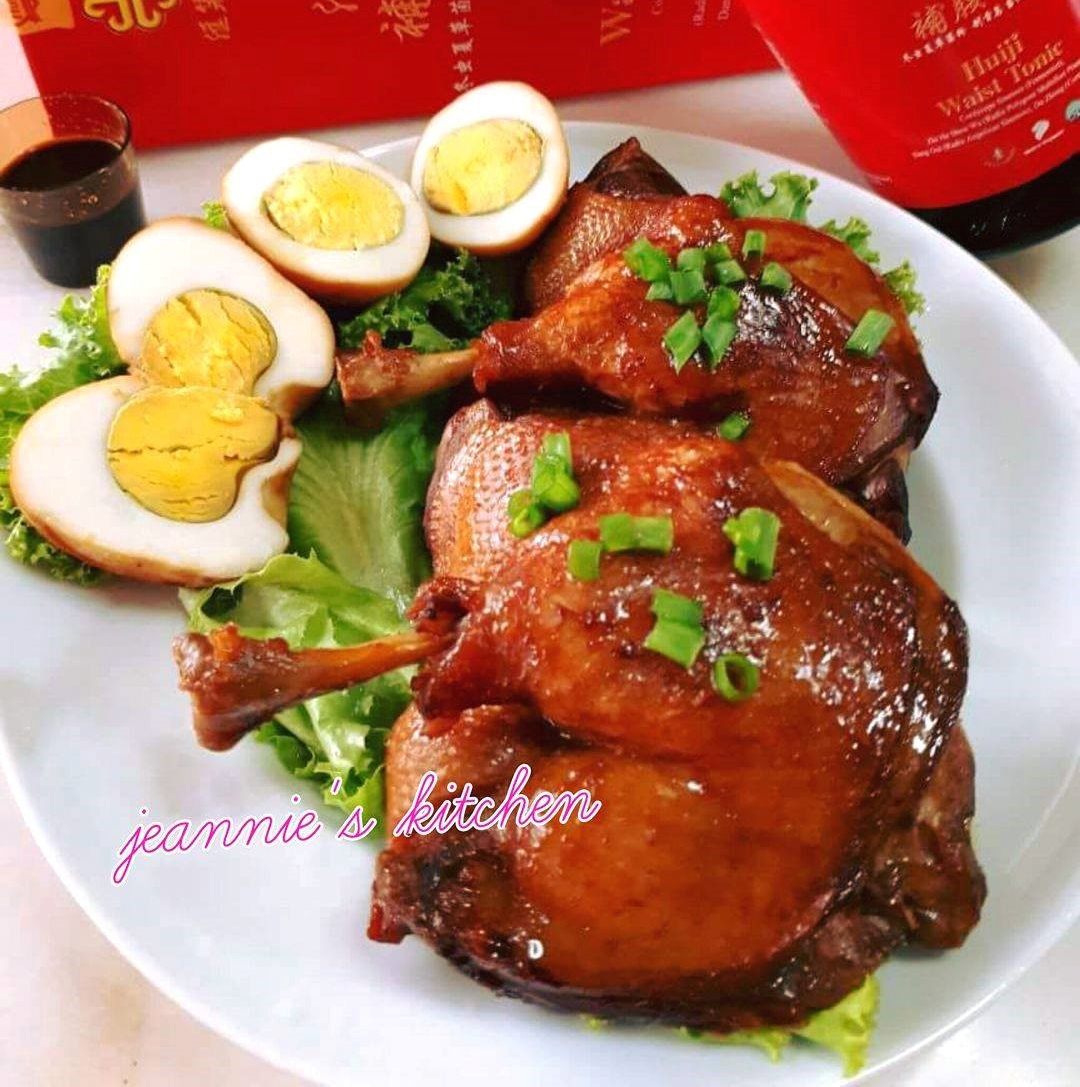 - Add in 1 cup of Huiji Health Tonic and simmer the duck legs for 5 minutes.