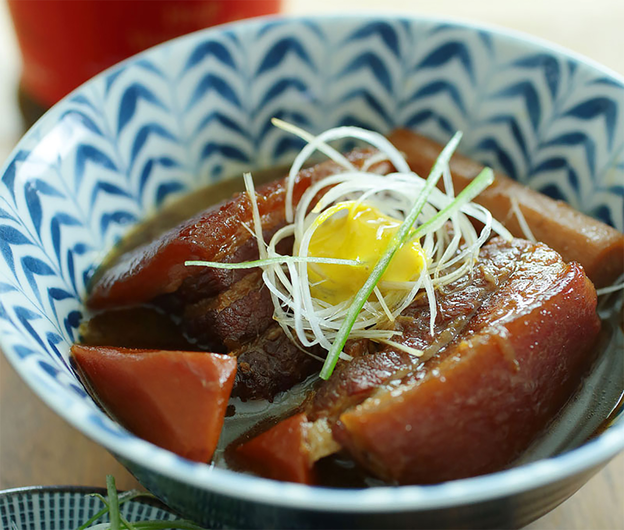 8. Bring to a boil, cover and simmer until pork belly becomes tender but still holds it’s shape, around 2 hours.