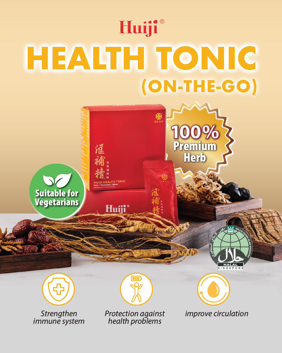 With premium TCM herbs used, Huiji Health Tonic brings these key benefits including: