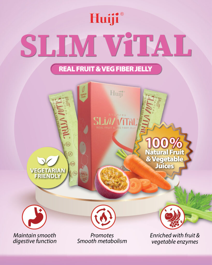 SlimVital Vegetable Fiber Jelly is your go-to natural solution for digestive support and gentle weight wellness. Formulated with 100% mixed fruit and vegetable juice—including papaya, guava, carrot, banana, celery, and more—each 20g stick is powered by Garcinia cambogia extract, natural enzymes, and guava leaf to promote metabolism, regulate bowel movement, and keep your gut feeling clean and light.